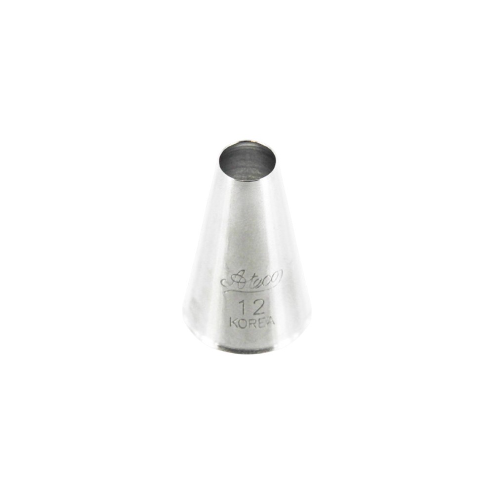 La boquilla Ateco #12 es una punta de repostería redonda estándar fabricada en acero inoxidable duradero, ideal para pastelerías y uso profesional