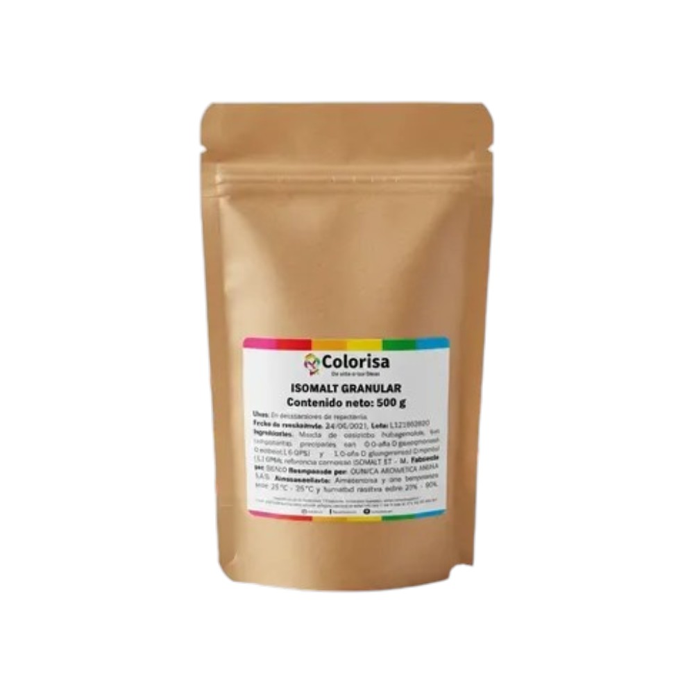 El isomalt es un edulcorante dietético elaborado a partir de azúcar, ampliamente utilizado en repostería creativa por su capacidad de resistir altas temperaturas sin caramelizarse fácilmente. Es ideal para crear decoraciones como figuras, hilos y nidos de azúcar, logrando acabados brillantes y profesionales.