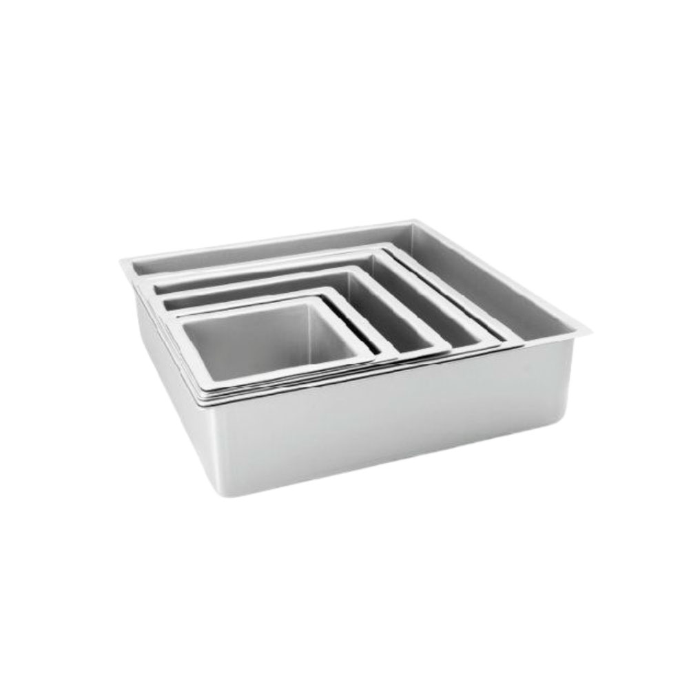 El juego de moldes cuadrados (x4) «Normal» es un set de repostería compuesto por cuatro unidades de aluminio, diseñado para hornear bizcochos de capas o tortas con bordes definidos. Su material asegura una distribución uniforme del calor, logrando cocciones consistentes, siendo resistente, duradero y, usualmente, con revestimiento antiadherente para facilitar el desmolde