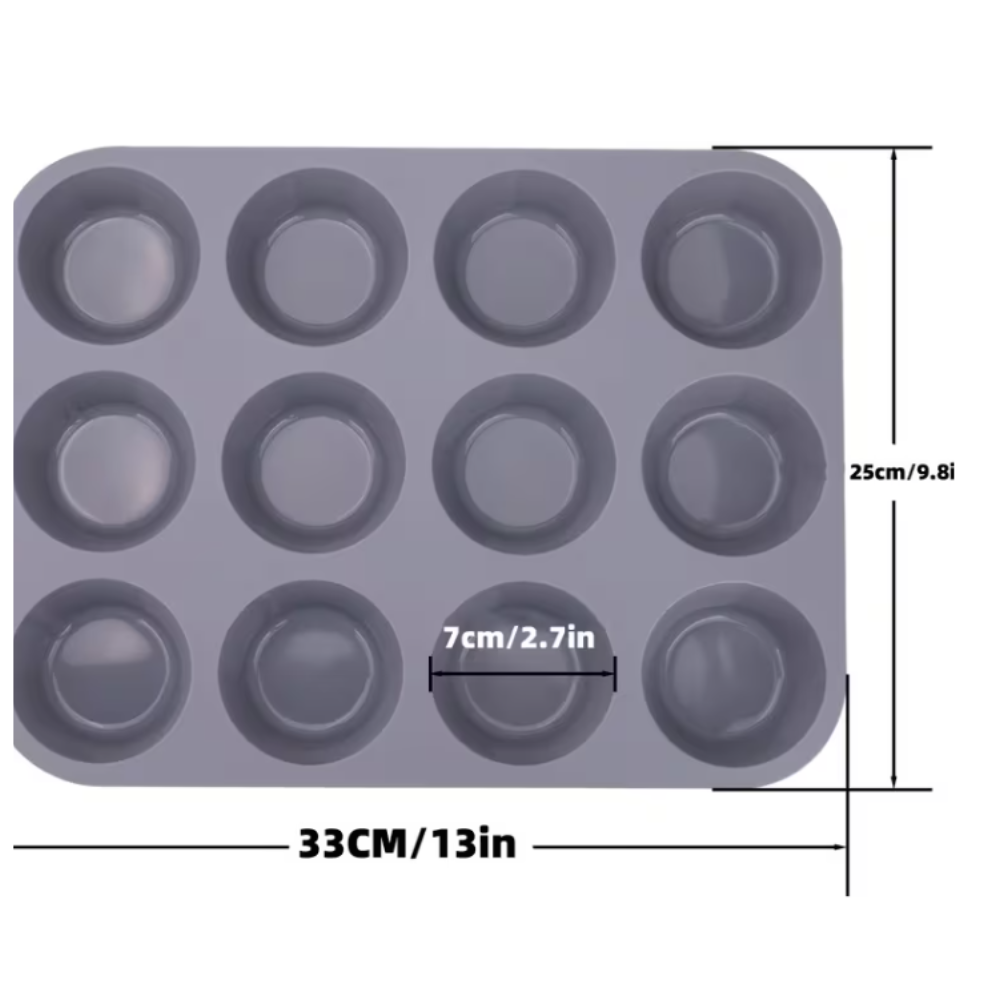 El molde de silicona para 12 cupcakes es un utensilio de repostería flexible, antiadherente y reutilizable, ideal para hornear muffins, ponquesitos o tartas de forma uniforme. Fabricado en silicona de grado alimenticio, resiste altas temperaturas (hasta 230°C), es apto para horno, microondas, congelador y lavavajillas, permitiendo un desmolde fácil sin necesidad de engrasar en exceso.